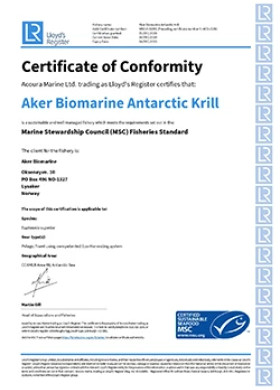 南極磷蝦油 認證書